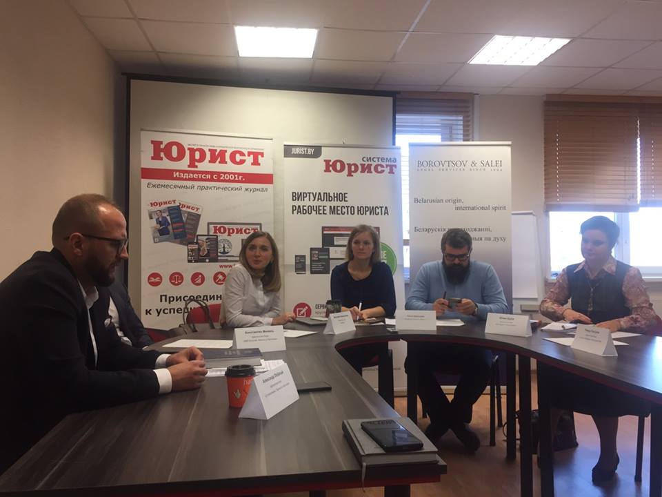 17 кастрычніка 2018 г. старшы юрыст, адвакат Юлія Шуба прыняла ўдзел у якасці выступоўцы ў дыскусійна-практычным круглым стале “Карпаратыўныя спрэчкі: абскарджанне рашэнняў органаў кіравання»”. Падчас мерапрыемства былі прааналізаваны апошнія тэндэнцыі ў правапрымяняльнай практыцы разгляду ўнутрыкарпаратыўных канфліктаў, закрануты праблемныя пытанні вызначэння кола суб'ектаў, якія маюць права на абскарджанне, вылічэння тэрміну іскавай даўнасці, магчымасці і ўмоў прымянення забеспячальніцкіх мер і іншыя практычныя аспекты. Сустрэча была арганізавана часопісам Юрыст.