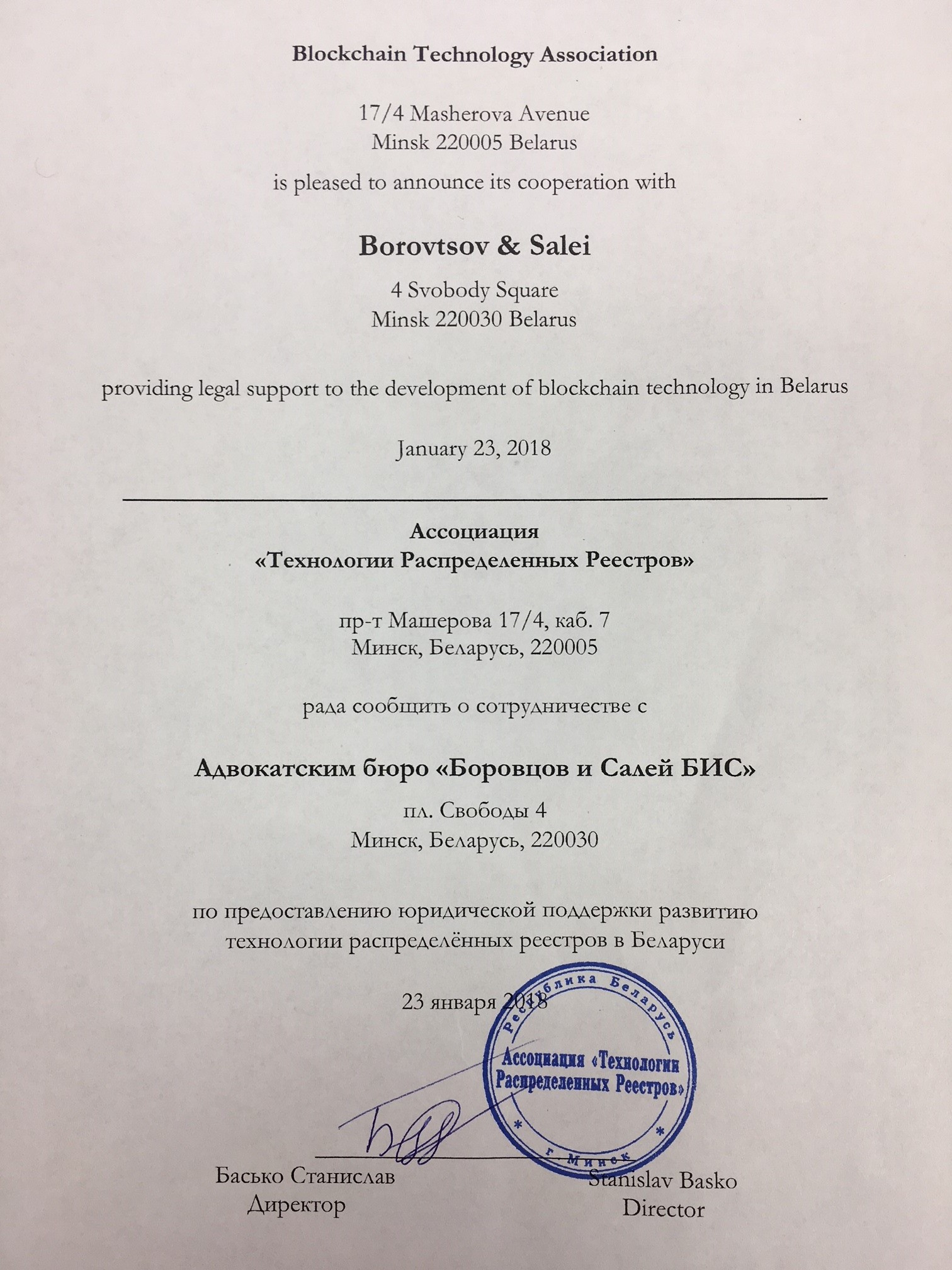 Borovtsov & Salei and Belarusian Blockchain Association have announced their cooperation